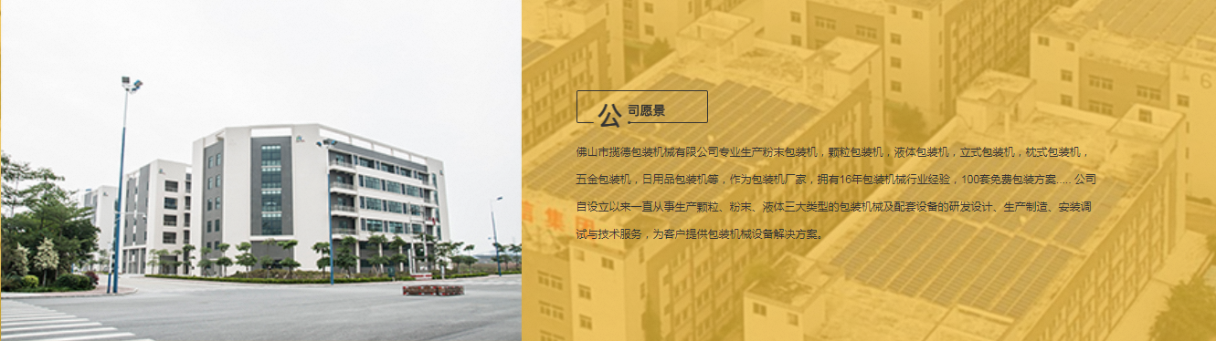 佛山市攬德包裝機(jī)械有限公司專(zhuān)業(yè)生產(chǎn)粉末包裝機(jī),顆粒包裝機(jī),液體包裝機(jī),立式包裝機(jī),枕式包裝機(jī),五金包裝機(jī),日用品包裝機(jī)等,作為包裝機(jī)廠家,擁有16年包裝機(jī)械行業(yè)經(jīng)驗(yàn),100套免費(fèi)包裝方案..... 公司自設(shè)立以來(lái)一直從事生產(chǎn)顆粒、粉末、液體三大類(lèi)型的包裝機(jī)械及配套設(shè)備的研發(fā)設(shè)計(jì)、生產(chǎn)制造、安裝調(diào)試與技術(shù)服務(wù),為客戶提供包裝機(jī)械設(shè)備解決方案。
